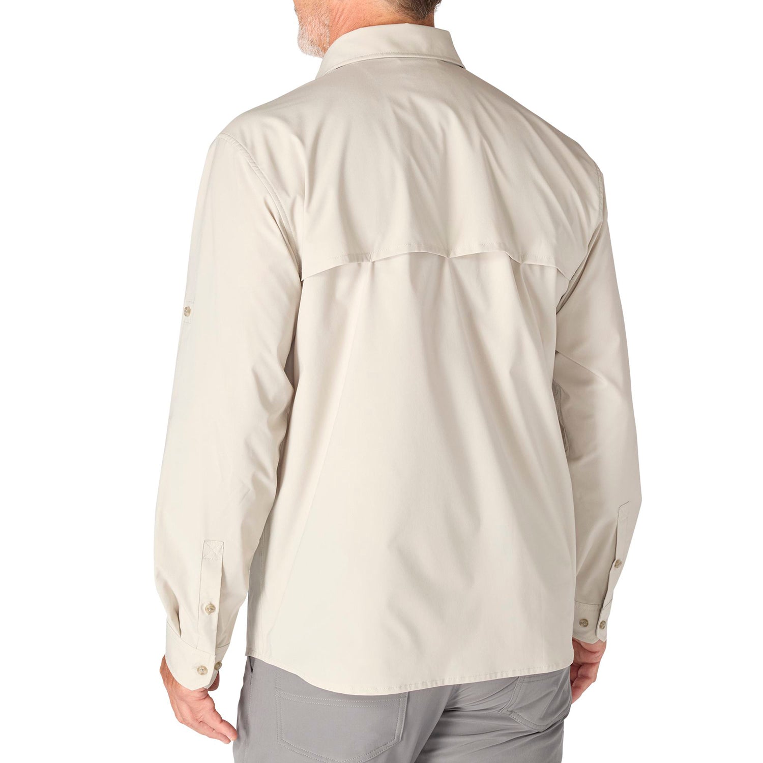• Long sleeves roll to three-quarter length with button-secured tabs