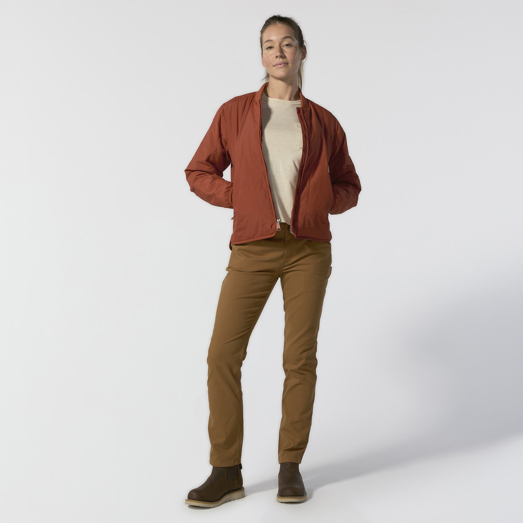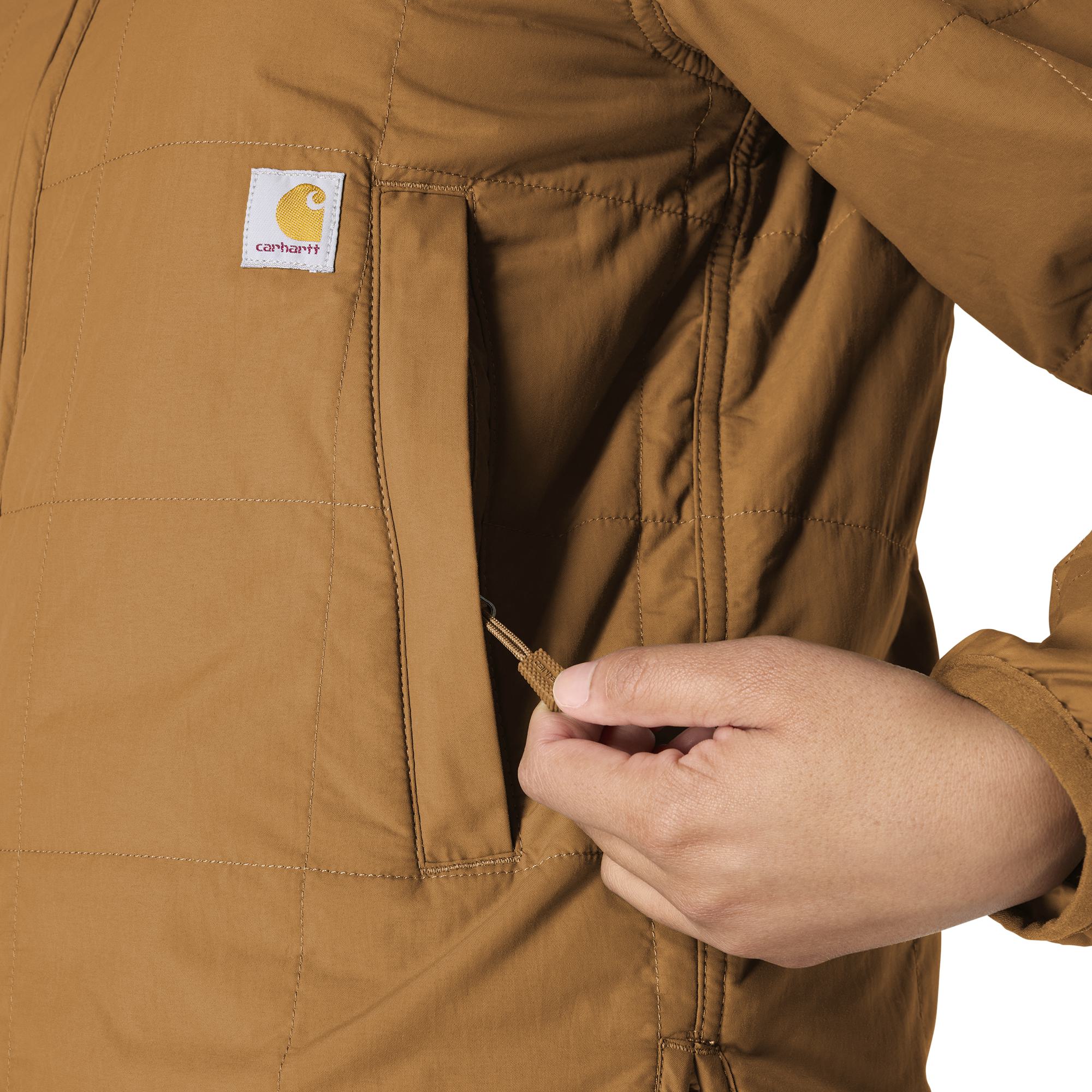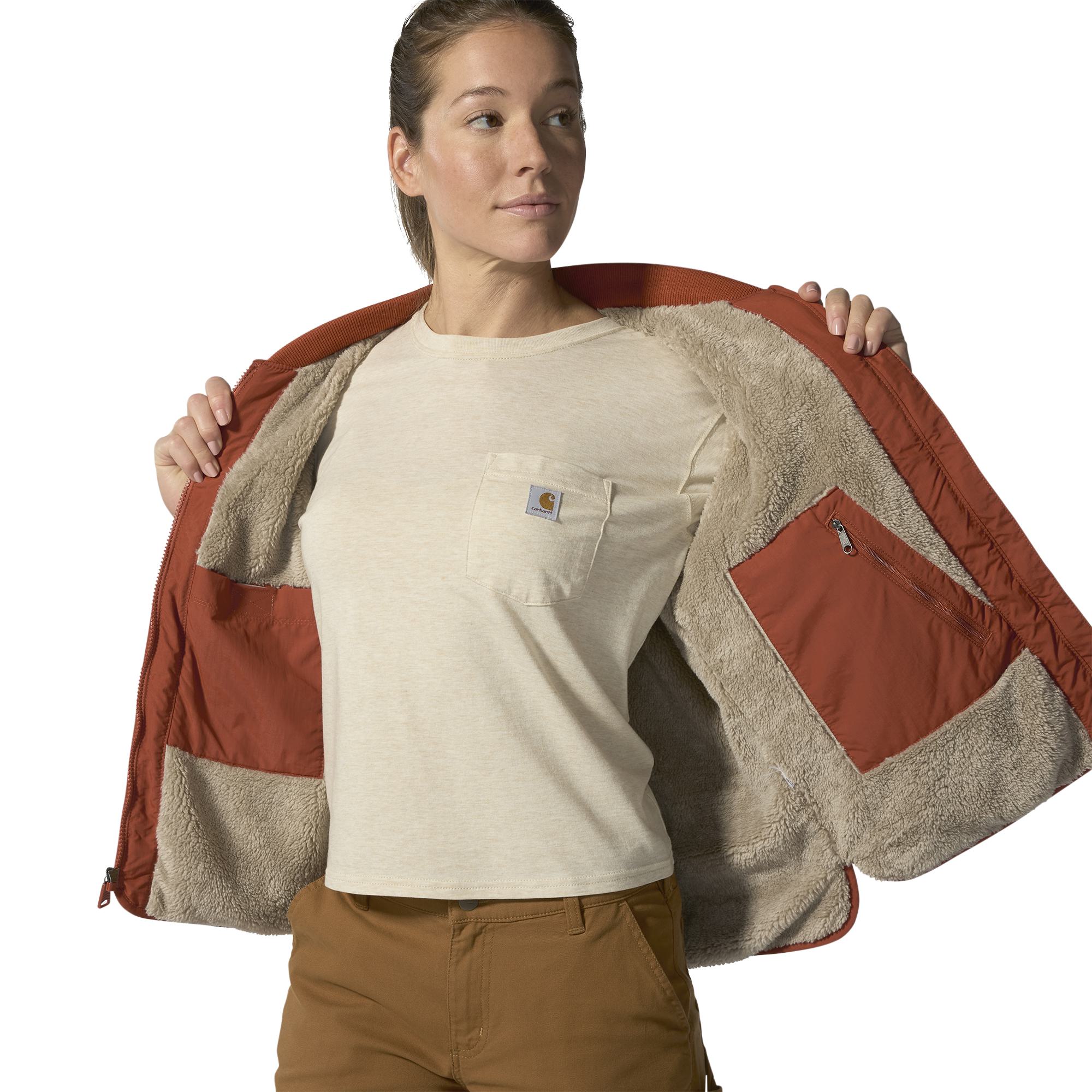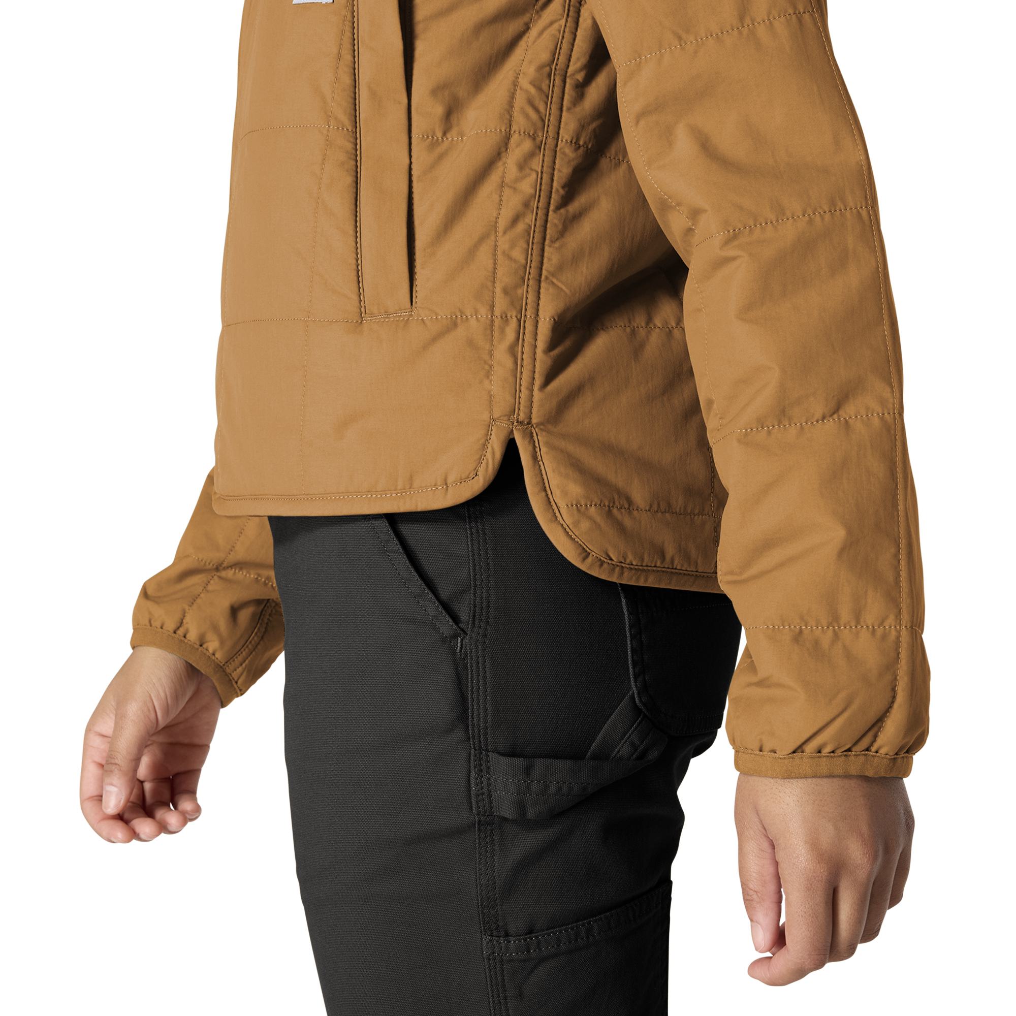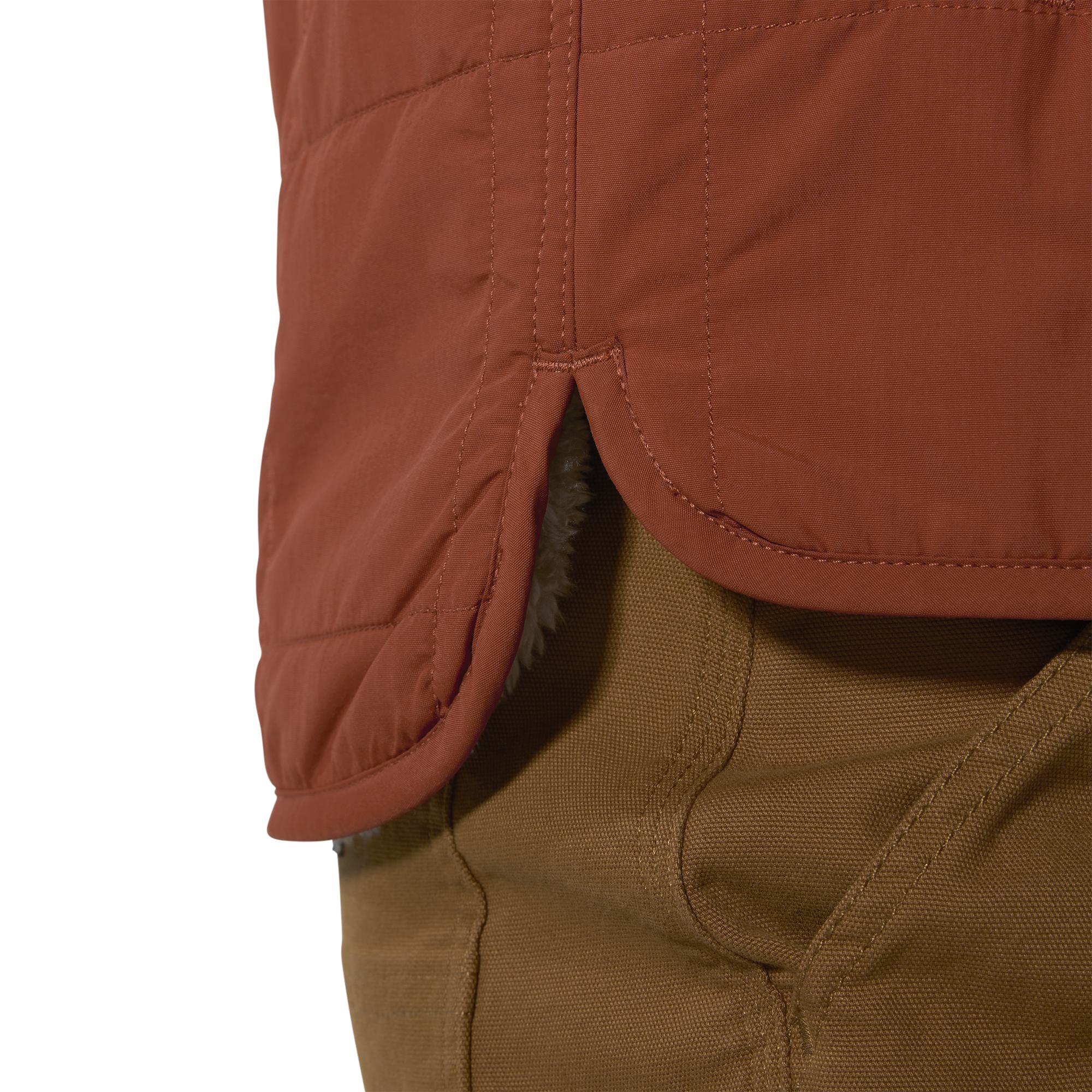 Keep working through cool, drizzly weather in this women's quilted jacket. Insulated for warmth and made with water-repellent technology that shrugs off light rain. Sherpa fleece in the upper body adds comfort, and side vents let the air in. A loose fit offers plenty of room to move.